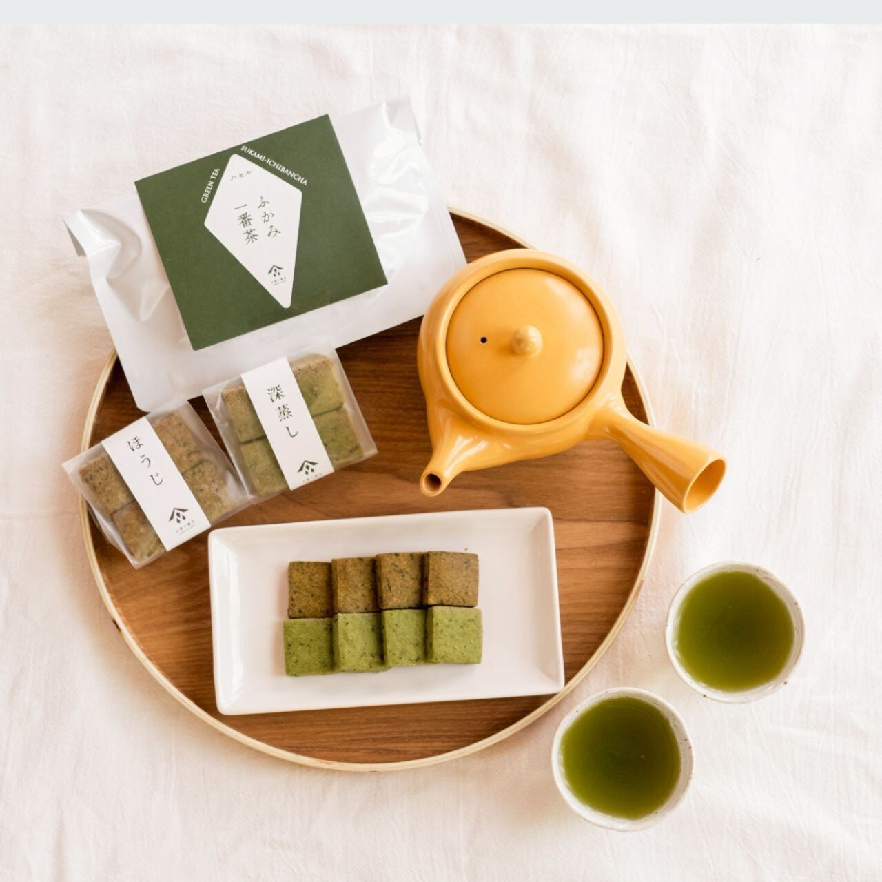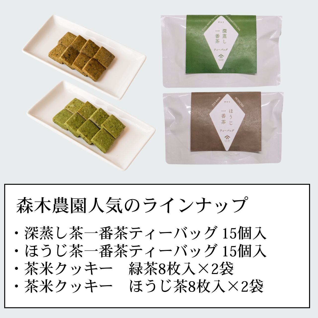 この茶米クッキーと森木農園の香り高い一番茶をセットにした