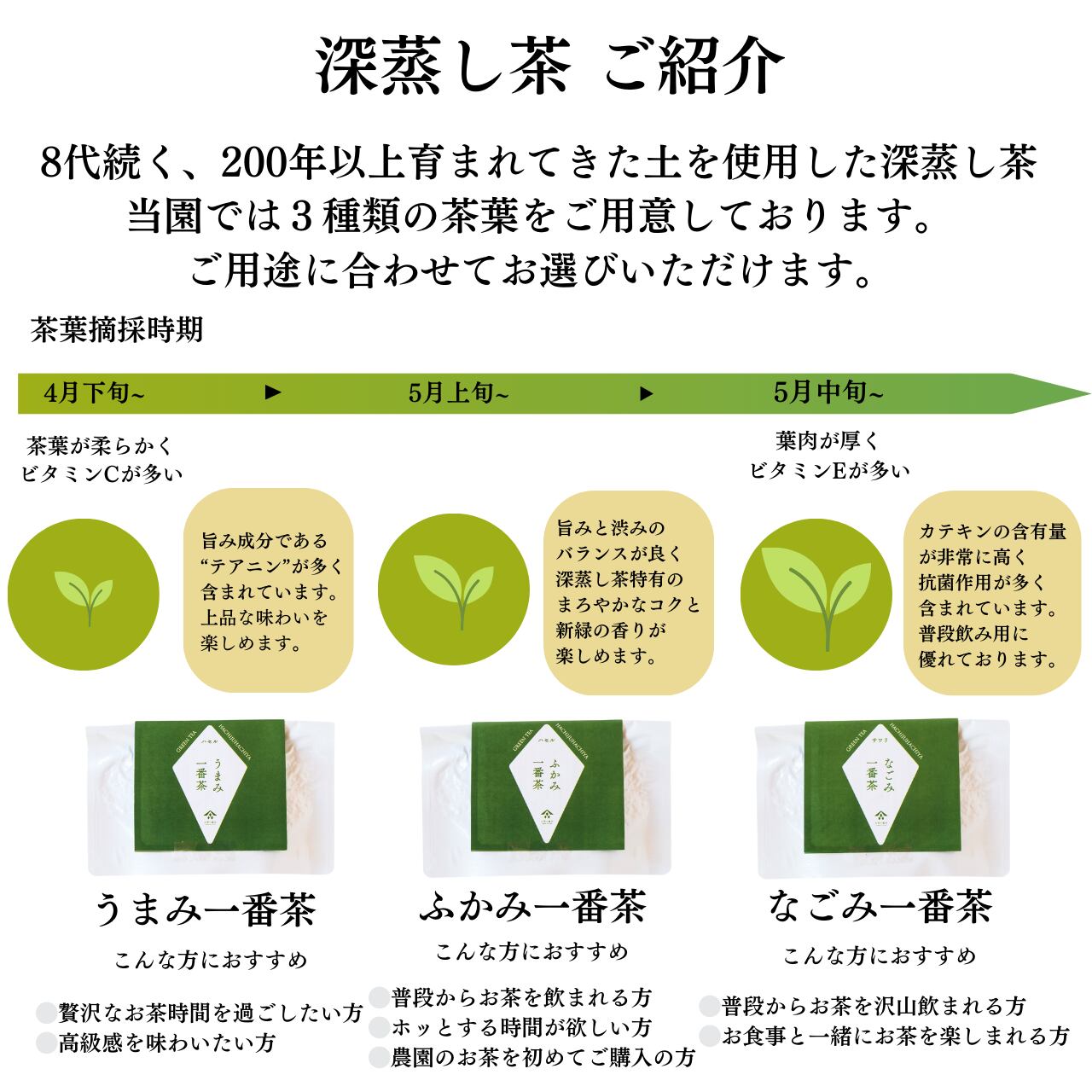昔から「八十八夜のお茶を飲むと病気をせず長生きをする」と言われ愛されてきました。